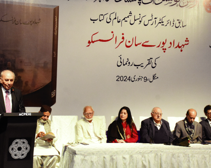 Karachi: Unveiling ceremony of Shamim Alam’s book ‘Shahdadpur say San Francisco” was organised under auspices of Arts Council Karachi and members Liaison Committee. Presided over by Colonel (retd) Mukhtar Butt, figures including Sec...