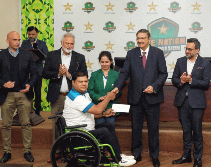 LAHORE: Chairman PCB Management Committee, Zaka Ashraf awarded a cash prize of PKR 3.6 million to the Pakistan Wheelchair team that became champions of the T20 Wheelchair Cricket Asia Cup 2023 held in Nepal. Pakistan wheelchair cricket team demonstra...