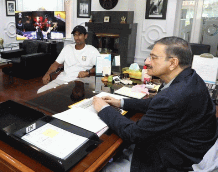 Islaabad: PCB Management Committee Chairman Zaka Ashraf met Sarfaraz Ahmed and Shanawaz Dahani on Friday at the Pakistan cricket headquarters in Lahore. The PCB Chairman congratulated Karachi Whites for winning the Quaid-e-Azam Trophy 2023-24 and hai...