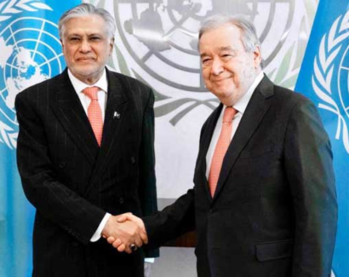 UNITED NATIONS: Deputy Prime Minister and Foreign Minister Ishaq Dar has sought support from the United Nations for countering cross-border terrorism from Afghanistan. The statement came after Deputy PM Dar held a meeting with United Nations Secretar...