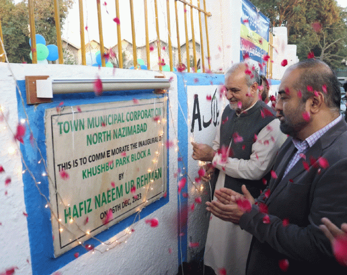 Karachi: Ameer Jamaat-e-Islami Hafiz Naeem Rehman inaugurated Abdul Haseeb Family Park and Rizwan Shaheed Park in Liaquatabad Town. Hafiz Naeem talking to media said Park has been named after Faraz Bhai’s father Abdul Haseeb Bhai. He was long-t...