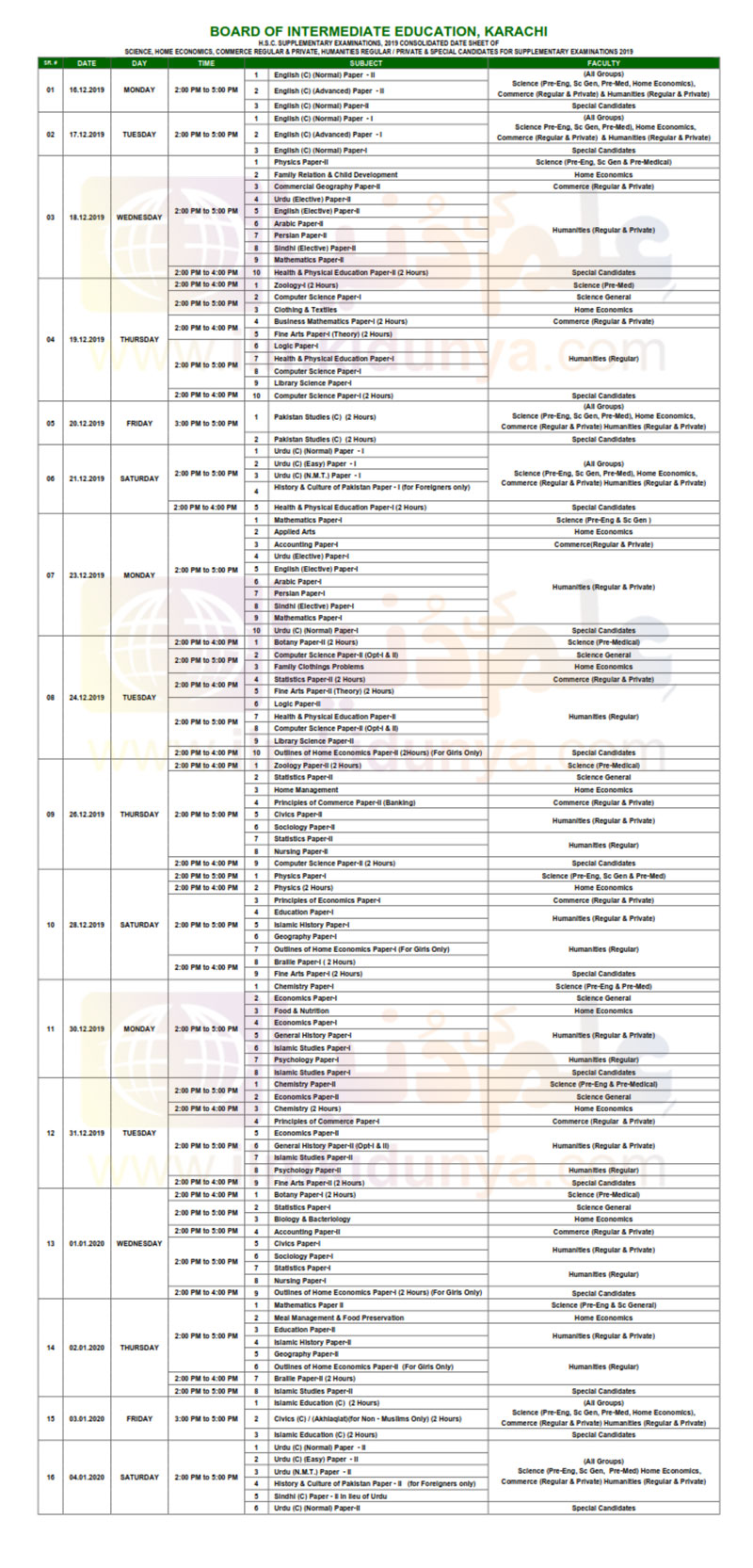 KARACHI: Chairman of Board of Intermediate Education Karachi has announced revised dates schedule for postponed examinations.