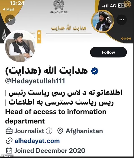 Kabul: Head of Taliban’s department for “Access to information”, Hedayatullah Hedayat and its top media watchdog, Abdul Haq Hammad, each had blue ticks on their accounts.